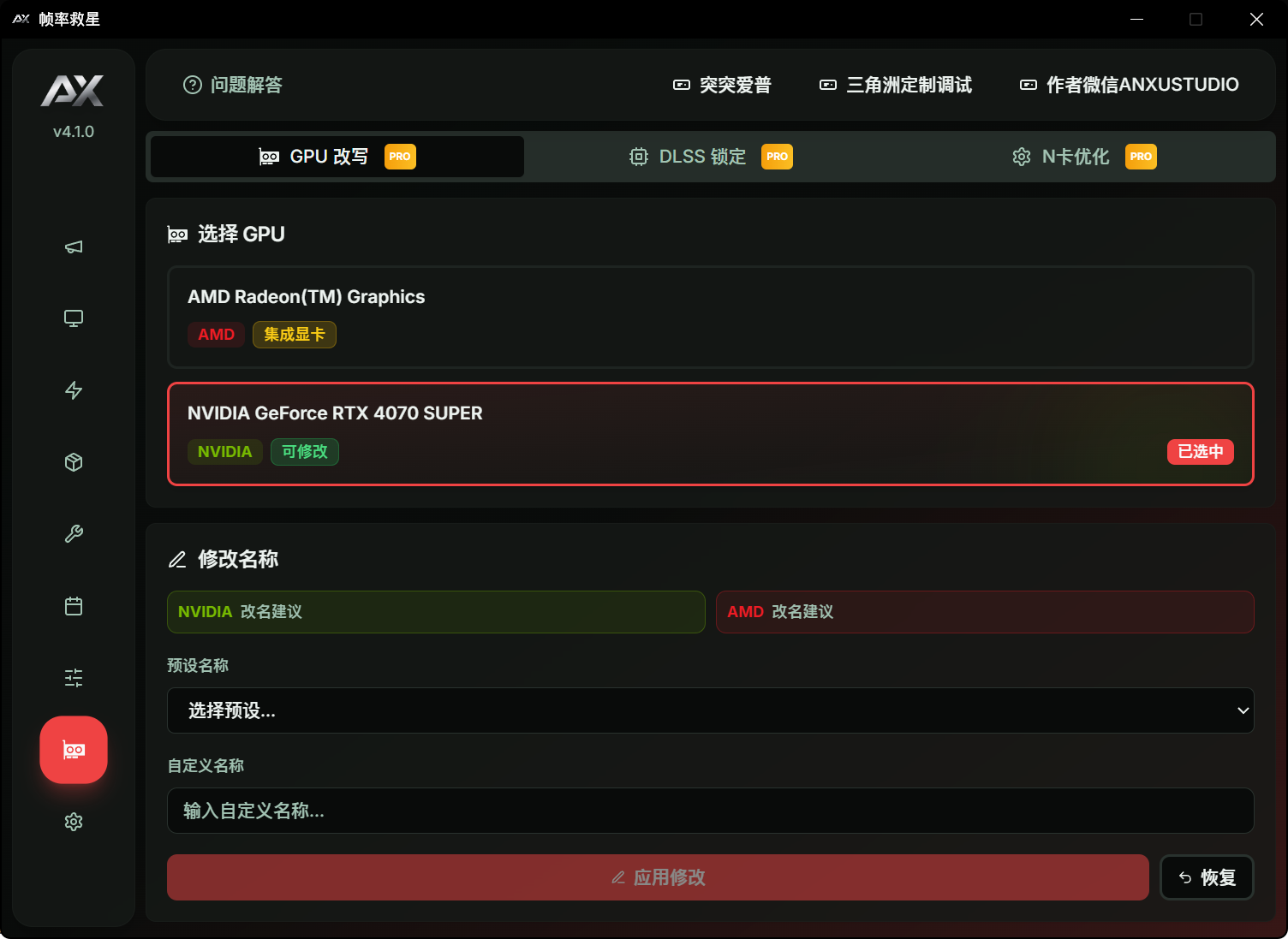多款帧率救星基础版主流优化功能 GPU改写、DLSS锁定、服务优化、优化工具箱、助你快速调试!